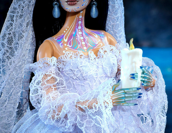 Эта легендарная героиня мексиканского фольклора, облачённая в чарующее белое кружево, возвращается в облике великолепной куклы Барби «День мертвых». История о привидении, передаваемая веками, Ла Йорона (Ла Льорона) оживает в многоярусном платье с корсетным лифом, синей нижней юбкой и рукавами, облегающими её полупрозрачные синие руки, украшенные праздничным скелетным узором. Считается, что она возвращается в этот день, и по этому случаю её украшают эффектный головной убор из чёрных роз, кружевная вуаль и традиционный макияж лица.