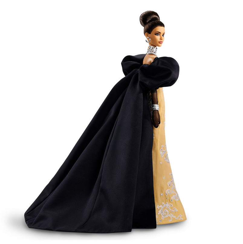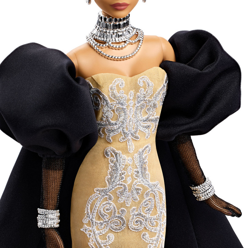 В четвертой части нашей серии «Стиль от дизайнера» мы представляем потрясающий творческий талант Линды Кьяу-Мершон. Ее образ мечты для красной дорожки воплотился в жизнь в этой коллекционной кукле Барби, которая поражает воображение в телесном платье-футляре с серебристой вышивкой. Поверх платья Линда добавила эффектные пышные рукава с потрясающим шлейфом до пола и прозрачные перчатки. В сочетании с эффектными серебристыми украшениями и гламурным макияжем кукла Барби готова к элегантному вечернему выходу.