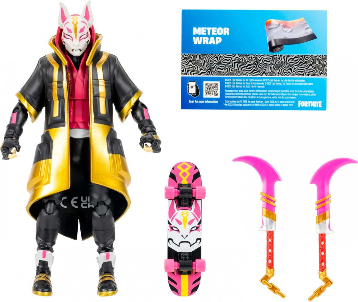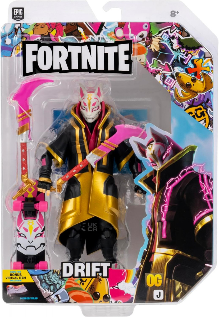 Персонаж популярной компьютерной игры ФортНайт / Fortnite. 6-дюймовая (15 см) шарнирная фигурка с инструментом для сбора урожая, украшением на спину и кодом для получения бонусного виртуального предмета. Оригинал от компании Jazwares. Фигурка детально воссоздает финальную стадию (Stage 5) скина Дрифт, включая маску Кицунэ и длинный черно-золотой плащ.